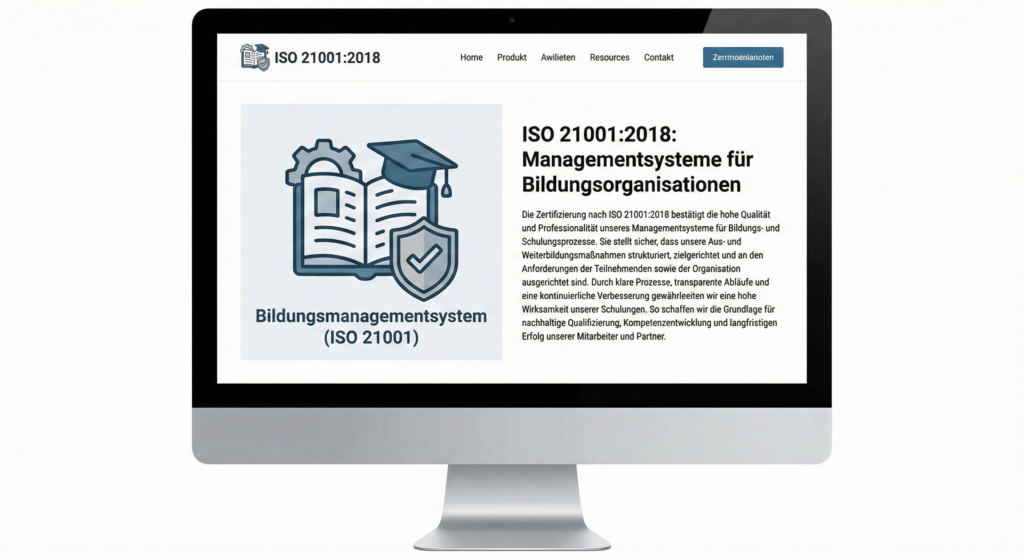 Die Zertifizierung nach ISO 21001:2018 bestätigt die hohe Qualität und Professionalität unseres Managementsystems für Bildungs- und Schulungsprozesse. Sie stellt sicher, dass unsere Aus- und Weiterbildungsmaßnahmen strukturiert, zielgerichtet und an den Anforderungen der Teilnehmenden sowie der Organisation ausgerichtet sind.
